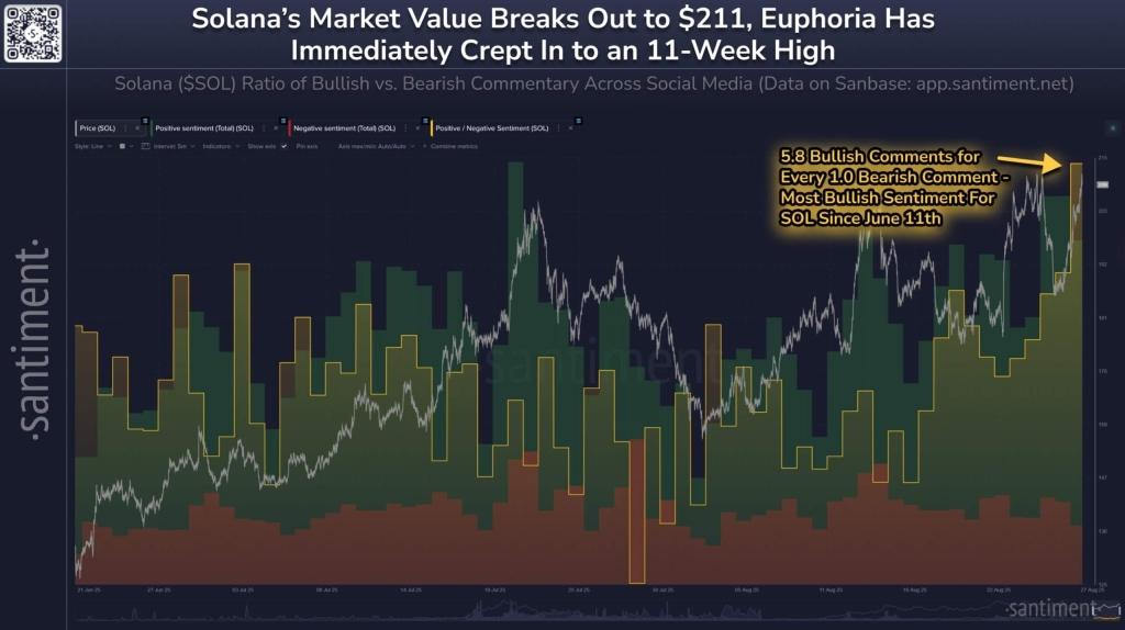 According to analytics firm Santiment, retail sentiment has turned sharply positive, with investors making nearly six bullish comments for every bearish one. Notably, this is the highest ratio recorded in over two months.