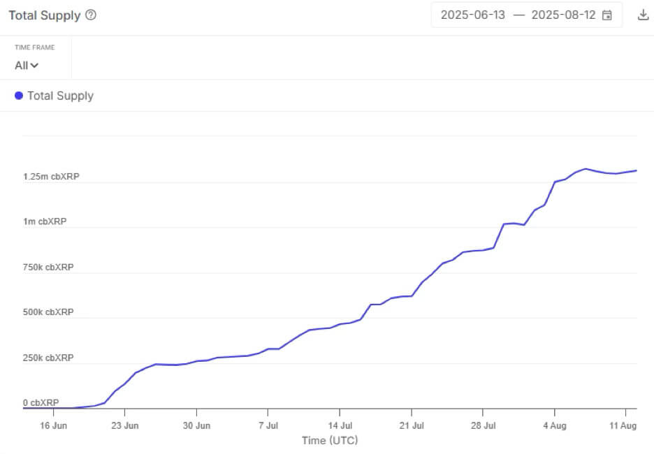 The token’s transformation from a previous cycle laggard to a favorite gained significant validation through Coinbase’s integration. In July, the exchange launched cbXRP, a wrapped token backed 1:1 by XRP specifically designed for cross-chain functionality. This infrastructure development immediately unlocked new use cases, with Moonwell becoming the first major DeFi protocol to support cbXRP, enabling community members to lend and borrow the wrapped token within the platform’s DeFi ecosystem.